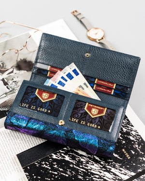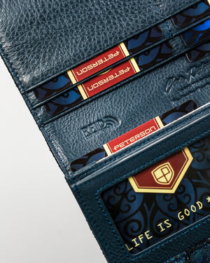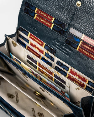 Ši elegantiška moteriška piniginė iš Peterson kolekcijos yra pagaminta iš aukštos kokybės natūralios odos, kuri užtikrina ilgaamžiškumą ir stilingą išvaizdą. Mėlyna spalva suteikia šiai piniginei išskirtinumo ir elegancijos.