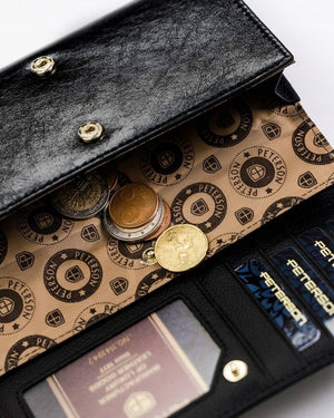 Ši elegantiška moteriška piniginė iš Peterson kolekcijos yra pagaminta iš aukštos kokybės natūralios odos, kuri užtikrina ilgaamžiškumą ir stilingą išvaizdą.