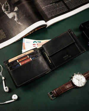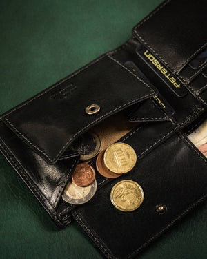 Ši elegantiška ir praktiška piniginė yra puikus pasirinkimas vyrams, vertinantiems kokybę ir saugumą. Pagaminta iš natūralios odos, ji užtikrina ilgaamžiškumą ir stilingą išvaizdą. Juoda spalva suteikia universalumo, todėl piniginė puikiai tiks prie bet kokio stiliaus. Vidutinio dydžio dizainas leidžia patogiai laikyti piniginę kišenėje ar krepšyje. Be to, integruota RFID apsauga padės apsaugoti jūsų korteles nuo nepageidaujamo nuskaitymo.