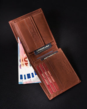 Ši natūralios odos piniginė vyrams išsiskiria elegantišku dizainu ir funkcionalumu. Ji puikiai tinka kasdieniam naudojimui, užtikrinant jūsų kortelių ir grynųjų pinigų saugumą. Dėl integruotos RFID apsaugos jūsų duomenys bus apsaugoti nuo neteisėto nuskaitymo. Rudos spalvos piniginė suteikia klasikinį ir stilingą įvaizdį, o vidutinis dydis leidžia patogiai nešiotis kišenėje ar krepšyje.