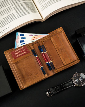 Ši elegantiška ir funkcionali piniginė yra puikus pasirinkimas vyrams, vertinantiems kokybę ir stilių. Pagaminta iš aukštos kokybės natūralios odos, ji užtikrina ilgaamžiškumą ir patikimumą.