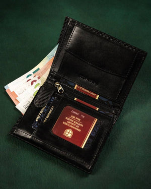 Ši piniginė ne tik apsaugo jūsų korteles nuo nepageidaujamo nuskaitymo dėl integruotos RFID apsaugos, bet ir suteikia pakankamai vietos visiems jūsų svarbiausiems daiktams. Jos klasikinė juoda spalva puikiai dera su bet kokiu stiliumi, o kompaktiški išmatavimai leidžia patogiai nešiotis ją kišenėje ar krepšyje.