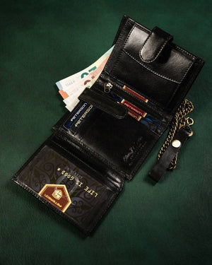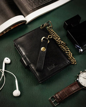 Ši natūralios odos piniginė yra puikus pasirinkimas vyrams, vertinantiems kokybę ir saugumą. Su integruota RFID apsauga, jūsų kortelės bus apsaugotos nuo nepageidaujamo nuskaitymo. Vidutinio dydžio piniginė patogiai telpa kišenėje, o juoda spalva suteikia elegancijos ir universalumo.