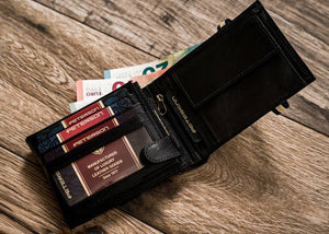 Ši elegantiška ir funkcionali piniginė yra puikus pasirinkimas vyrams, vertinantiems kokybę ir saugumą. Pagaminta iš natūralios odos, ji ne tik atrodo stilingai, bet ir užtikrina ilgaamžiškumą. Juoda spalva suteikia universalumo, todėl piniginė puikiai tiks prie bet kokio stiliaus. Dėl integruotos RFID apsaugos jūsų kortelės bus apsaugotos nuo nepageidaujamo nuskaitymo. Su 6-10 kortelių skyriais, ši piniginė yra praktiška ir patogi kasdieniam naudojimui.
