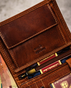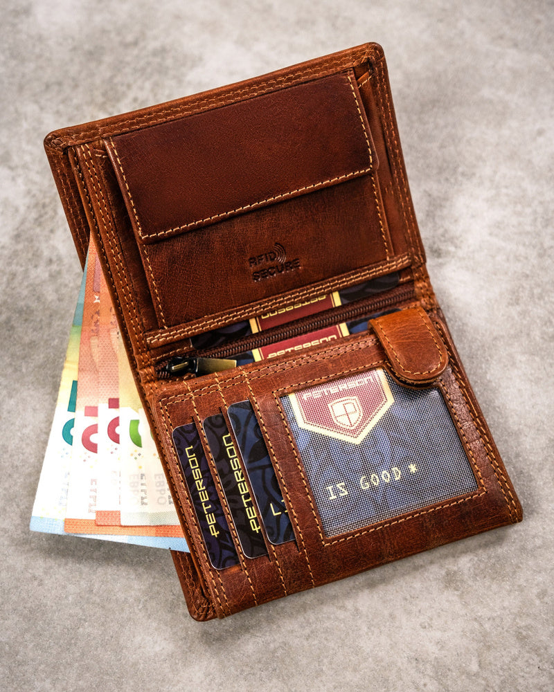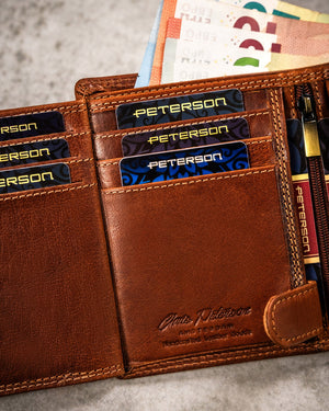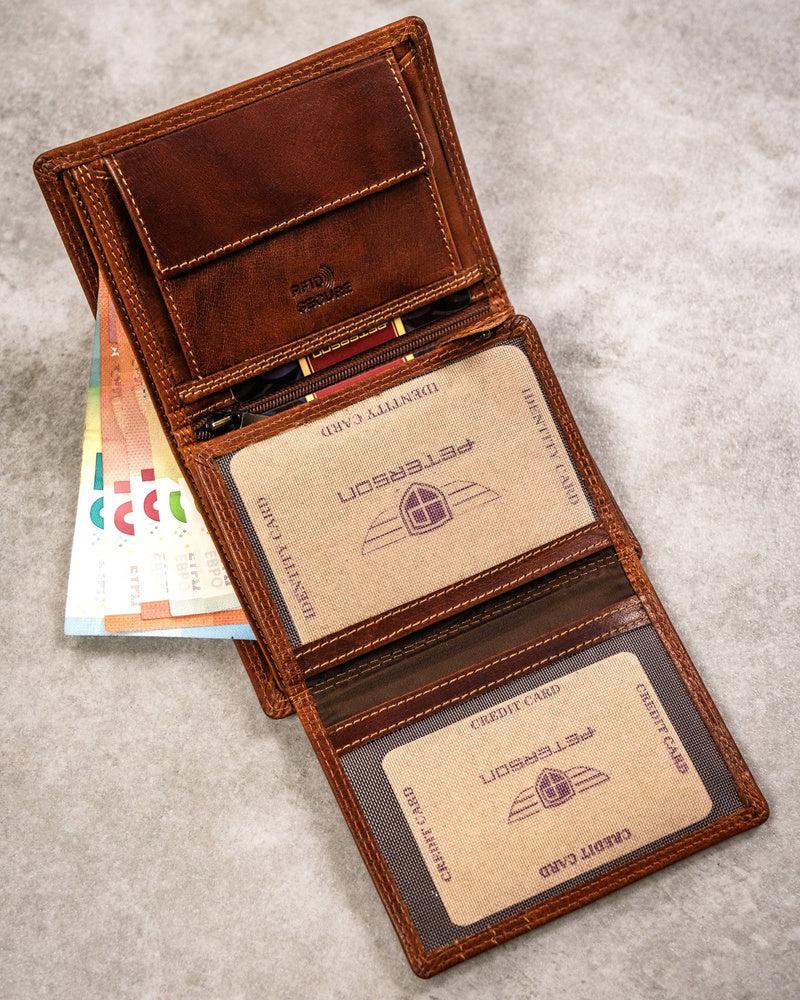 Ši elegantiška piniginė iš Peterson prekės ženklo yra puikus pasirinkimas vyrams, vertinantiems kokybę ir stilių. Pagaminta iš aukštos kokybės natūralios odos, ji užtikrina ilgaamžiškumą ir patikimumą.