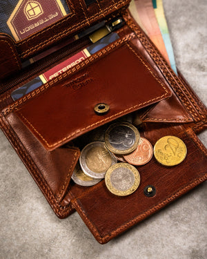 Ši Peterson piniginė yra pagaminta iš aukštos kokybės natūralios odos, kuri užtikrina ilgaamžiškumą ir eleganciją. Jos šviesiai ruda spalva suteikia klasikinį ir stilingą įvaizdį, puikiai derantį prie įvairių aprangos stilių.