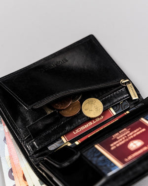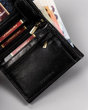 Ši elegantiška ir funkcionali piniginė yra puikus pasirinkimas vyrams, vertinantiems kokybę ir saugumą. Pagaminta iš natūralios odos, ji užtikrina ilgaamžiškumą ir stilingą išvaizdą. Juoda spalva suteikia universalumo, todėl piniginė puikiai tiks prie bet kokio stiliaus. Dėl integruotos RFID apsaugos jūsų kortelės bus apsaugotos nuo nepageidaujamo nuskaitymo. Piniginėje yra 6-10 kortelių skyrių, todėl ji yra praktiška ir talpi. Jos išmatavimai – 13 cm x 10 cm x 3 cm – leidžia patogiai laikyti piniginę kišenėje ar krepšyje.