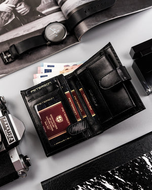 Ši elegantiška ir funkcionali piniginė yra puikus pasirinkimas vyrams, vertinantiems kokybę ir saugumą. Pagaminta iš natūralios odos, ji užtikrina ilgaamžiškumą ir stilingą išvaizdą. Juoda spalva suteikia universalumo, todėl piniginė puikiai tiks prie bet kokio stiliaus. Dėl didelio dydžio ir daugiau nei 10 kortelių skyrių, ji patogiai talpina visus būtiniausius daiktus. Be to, integruota RFID apsauga padeda apsaugoti jūsų korteles nuo nepageidaujamo nuskaitymo.