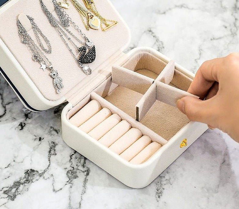 Užsegama patogiu užtrauktuku, o vidus aptrauktas minkšta zomšos medžiaga, kuri apsaugo jūsų papuošalus nuo įbrėžimų.