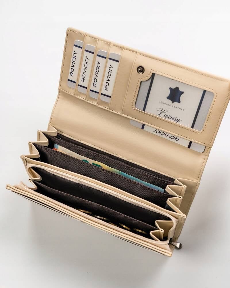 Ši elegantiška moteriška piniginė iš 4U Cavaldi yra pagaminta iš ekologiškos odos, kuri suteikia prabangos pojūtį ir yra draugiška aplinkai. Smėlio spalva puikiai dera su įvairiais stiliaus pasirinkimais. Piniginė yra didelio dydžio, todėl joje patogiai telpa viskas, ko jums reikia. Su 6-10 kortelių skyriais ir atskiru monetų skyriumi, ši piniginė užtikrina, kad viskas bus tvarkingai sudėta. Be to, integruota RFID apsauga padės apsaugoti jūsų korteles nuo nepageidaujamo nuskaitymo.