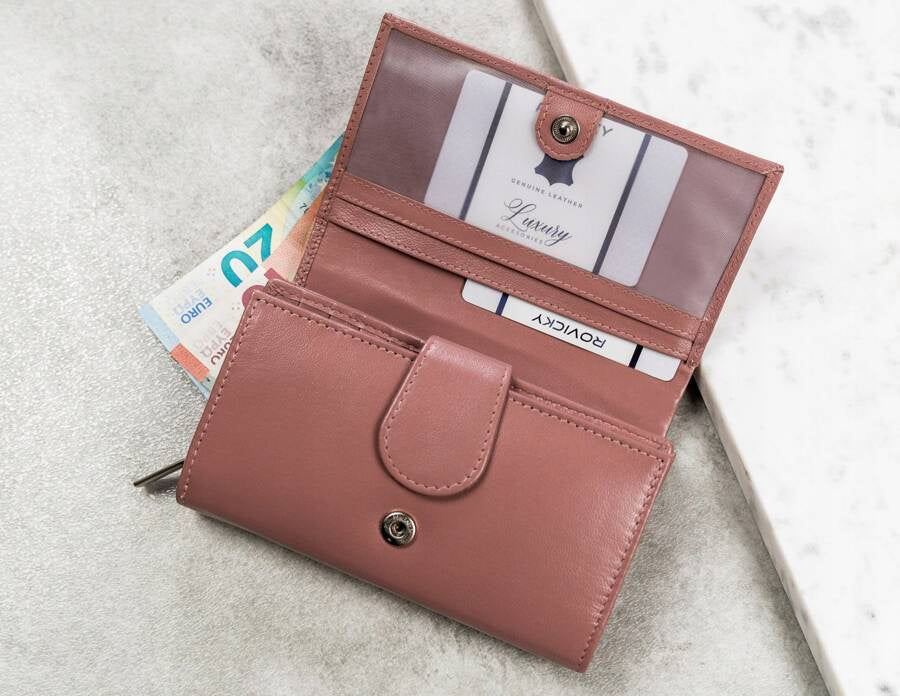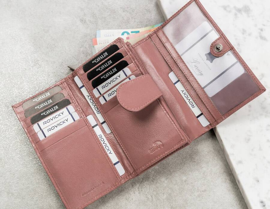 Ši elegantiška moteriška piniginė iš 4U Cavaldi yra pagaminta iš aukštos kokybės natūralios odos, suteikiančios ilgaamžiškumą ir stilių. Rožinė spalva suteikia švelnumo ir elegancijos, o didelis dydis užtikrina, kad turėsite pakankamai vietos visiems savo daiktams. Su daugiau nei 10 kortelių skyrių ir užsegamu monetų skyriumi, ši piniginė yra praktiška ir patogi kasdieniam naudojimui. Be to, integruota RFID apsauga padės apsaugoti jūsų asmeninius duomenis nuo neteisėto nuskaitymo.
