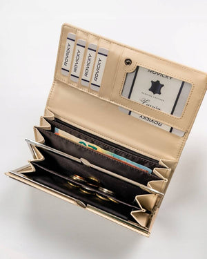 Ši piniginė yra puikus pasirinkimas moterims, vertinančioms funkcionalumą ir saugumą, nes ji turi RFID apsaugą, kuri padeda apsaugoti jūsų korteles nuo neteisėto nuskaitymo.