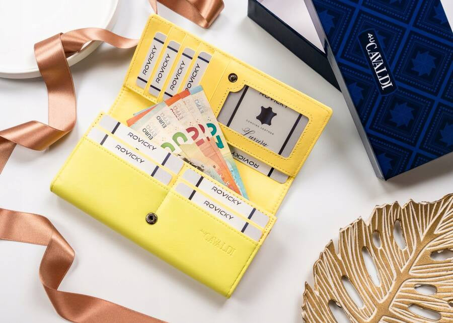 Ši elegantiška moteriška piniginė iš 4U Cavaldi yra puikus pasirinkimas tiems, kurie vertina stilių ir funkcionalumą. Pagaminta iš ekologiškos odos, ji ne tik atrodo puikiai, bet ir yra draugiška aplinkai. Su 6-10 kortelių skyrių, ši piniginė suteikia pakankamai vietos visiems jūsų svarbiausiems daiktams.