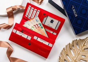 Ši elegantiška ir praktiška moteriška piniginė iš 4U Cavaldi yra puikus pasirinkimas tiems, kurie vertina kokybę ir stilių. Pagaminta iš ekologiškos odos, ji ne tik atrodo prabangiai, bet ir yra draugiška aplinkai. Raudona spalva suteikia išskirtinumo, o didelis dydis užtikrina, kad turėsite pakankamai vietos visiems savo daiktams. Patogus užtrauktuku uždaromas monetų skyrius ir daugybė kortelių skyrių padės išlaikyti tvarką. Nors piniginė neturi RFID apsaugos, jos funkcionalumas ir dizainas kompensuoja šį trūkumą.