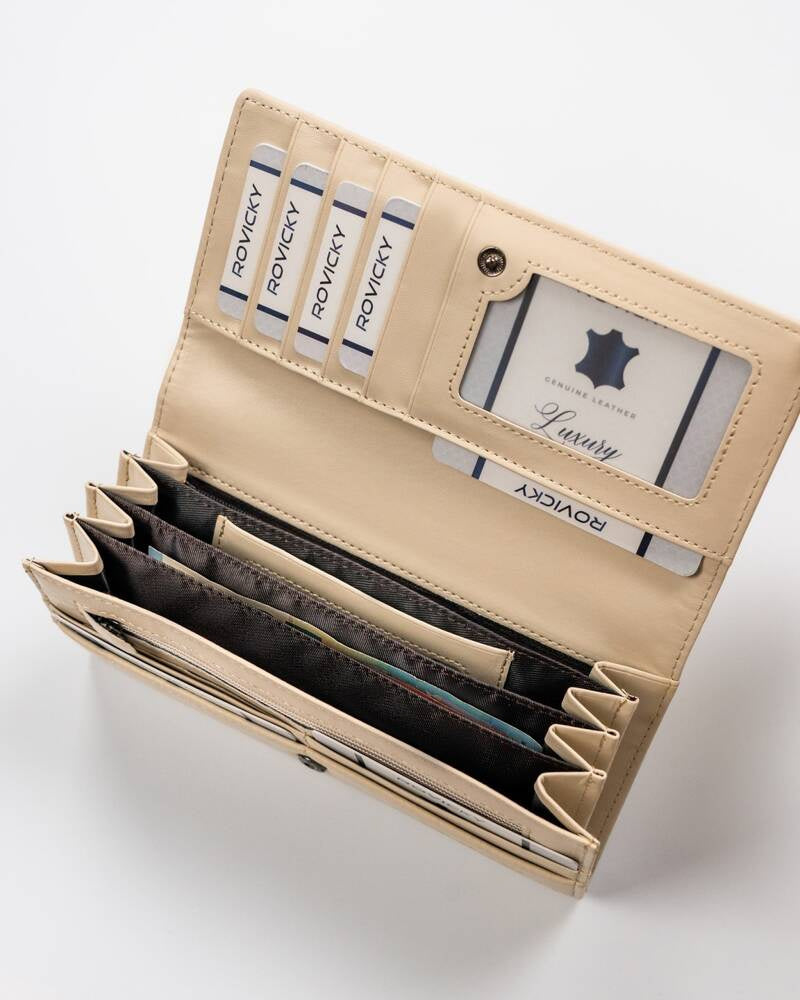 Ši elegantiška moteriška piniginė iš 4U Cavaldi yra puikus pasirinkimas tiems, kurie vertina stilių ir funkcionalumą. Pagaminta iš ekologiškos odos, ji ne tik atrodo prabangiai, bet ir yra draugiška aplinkai. Bežinė spalva suteikia universalumo, todėl piniginė puikiai derės prie įvairių aprangos stilių. Didelis dydis užtikrina, kad turėsite pakankamai vietos visiems savo kortelėms ir monetoms, o RFID apsauga padės apsaugoti jūsų duomenis nuo neteisėto nuskaitymo.