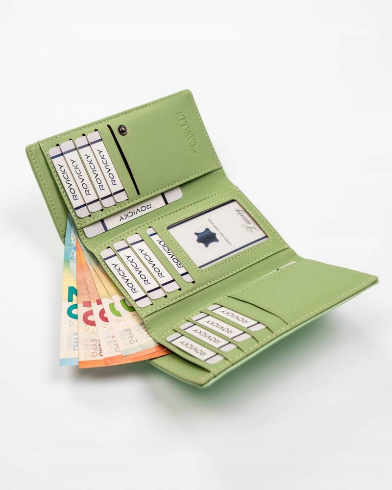 - Spalva: Gaivi mėtų spalva, suteikianti piniginei išskirtinumo.
