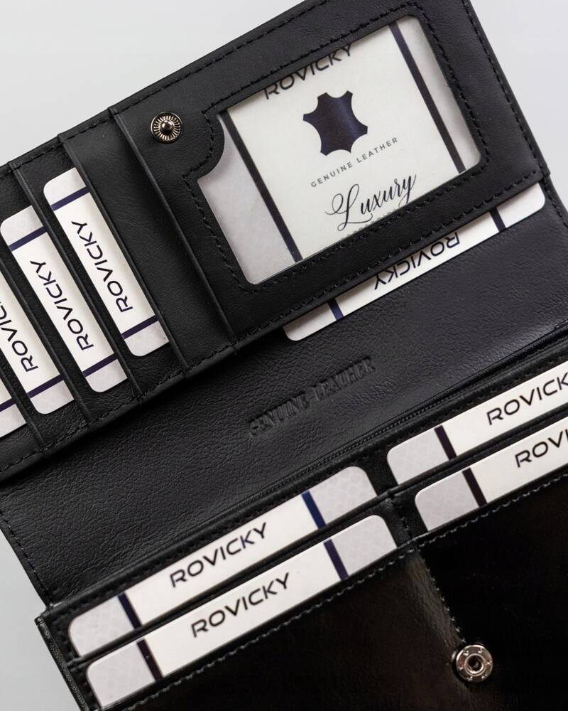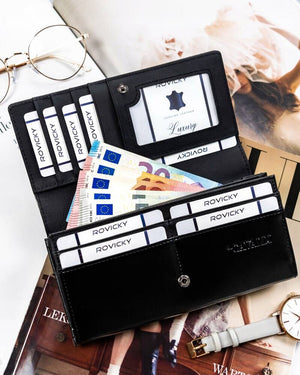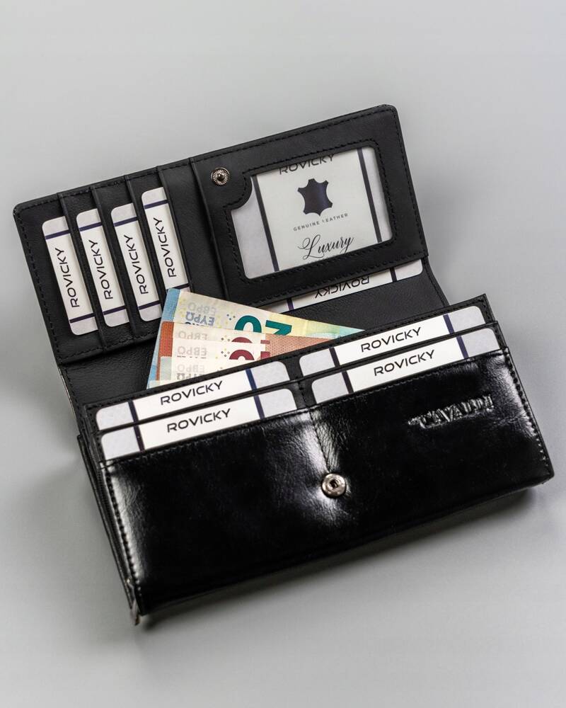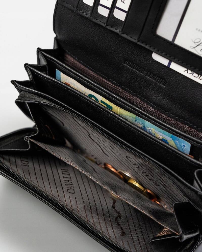 Ši elegantiška ir funkcionali moteriška piniginė iš 4U Cavaldi yra puikus pasirinkimas tiems, kurie vertina kokybę ir saugumą. Pagaminta iš natūralios ir ekologiškos odos, ji ne tik atrodo stilingai, bet ir yra patvari. Juoda spalva suteikia universalumo, todėl piniginė puikiai derės prie bet kokios aprangos. Dėl didelio dydžio ir daugybės skyrių, įskaitant specialų skyrelį monetoms, ši piniginė yra itin praktiška. Be to, integruota RFID apsauga užtikrina jūsų kortelių saugumą.