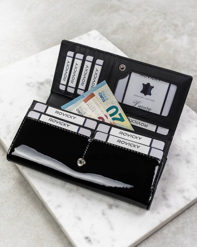 Ši piniginė yra praktiška ir talpi, turinti pakankamai vietos jūsų kortelėms ir monetoms. Jos klasikinė juoda spalva puikiai derės prie bet kokio stiliaus.