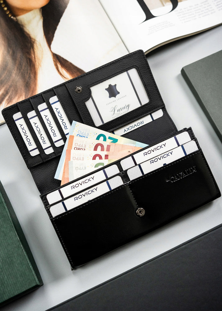 Ši elegantiška 4U Cavaldi Q53 moteriška piniginė yra puikus pasirinkimas ieškantiems stilingo ir funkcionalaus aksesuaro. Pagaminta iš natūralios ir ekologiškos odos, ši piniginė ne tik atrodo prabangiai, bet ir yra patvari. Juoda spalva suteikia universalumo, todėl ji puikiai derės prie bet kokios aprangos.
