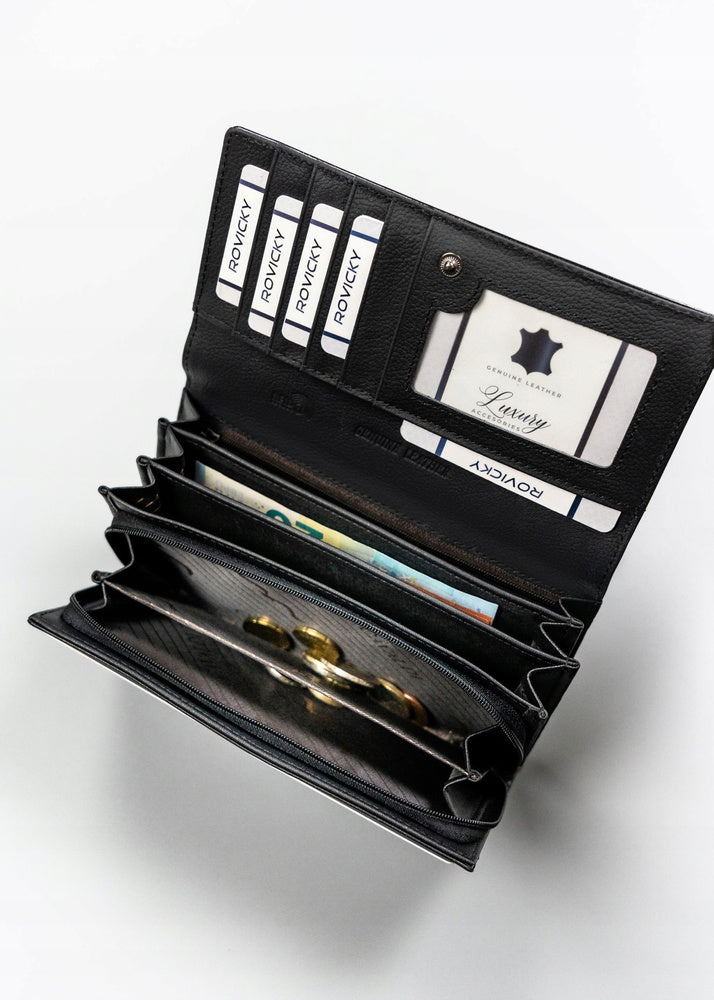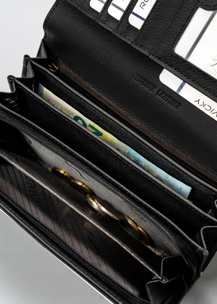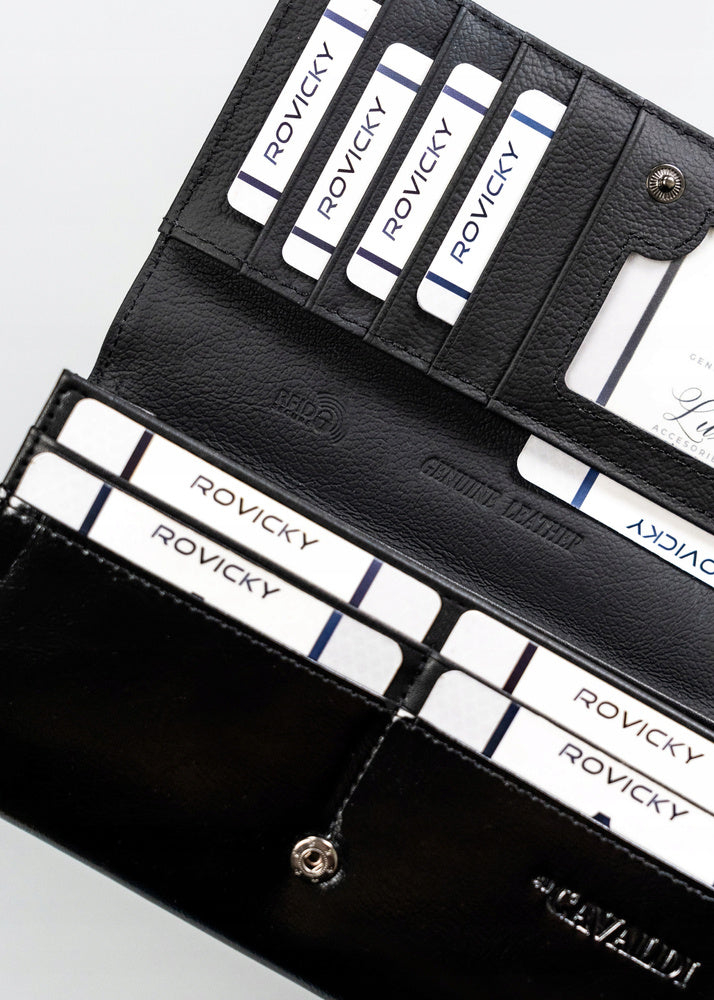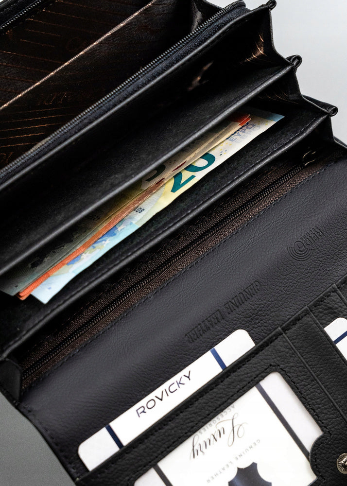 Piniginė turi 6-10 kortelių skyrius, todėl galėsite patogiai laikyti visas savo korteles. Taip pat yra skyrelis monetoms, kuris padės išlaikyti tvarką. Dėl integruotos RFID apsaugos jūsų kortelės bus apsaugotos nuo nepageidaujamo nuskaitymo.