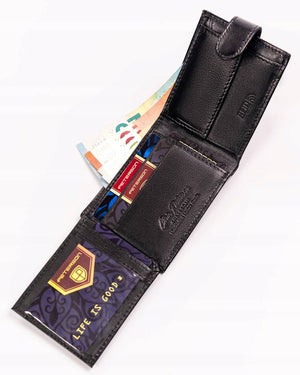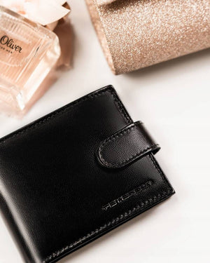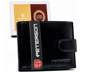 Ši elegantiška ir kompaktiška moteriška piniginė iš Peterson yra puikus pasirinkimas tiems, kurie vertina kokybę ir funkcionalumą. Pagaminta iš natūralios odos, ji užtikrina ilgaamžiškumą ir stilingą išvaizdą. Juoda spalva suteikia universalumo, todėl piniginė puikiai derės prie bet kokios aprangos.