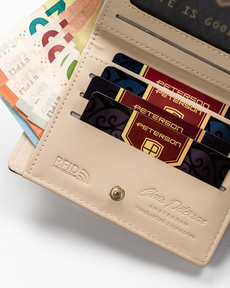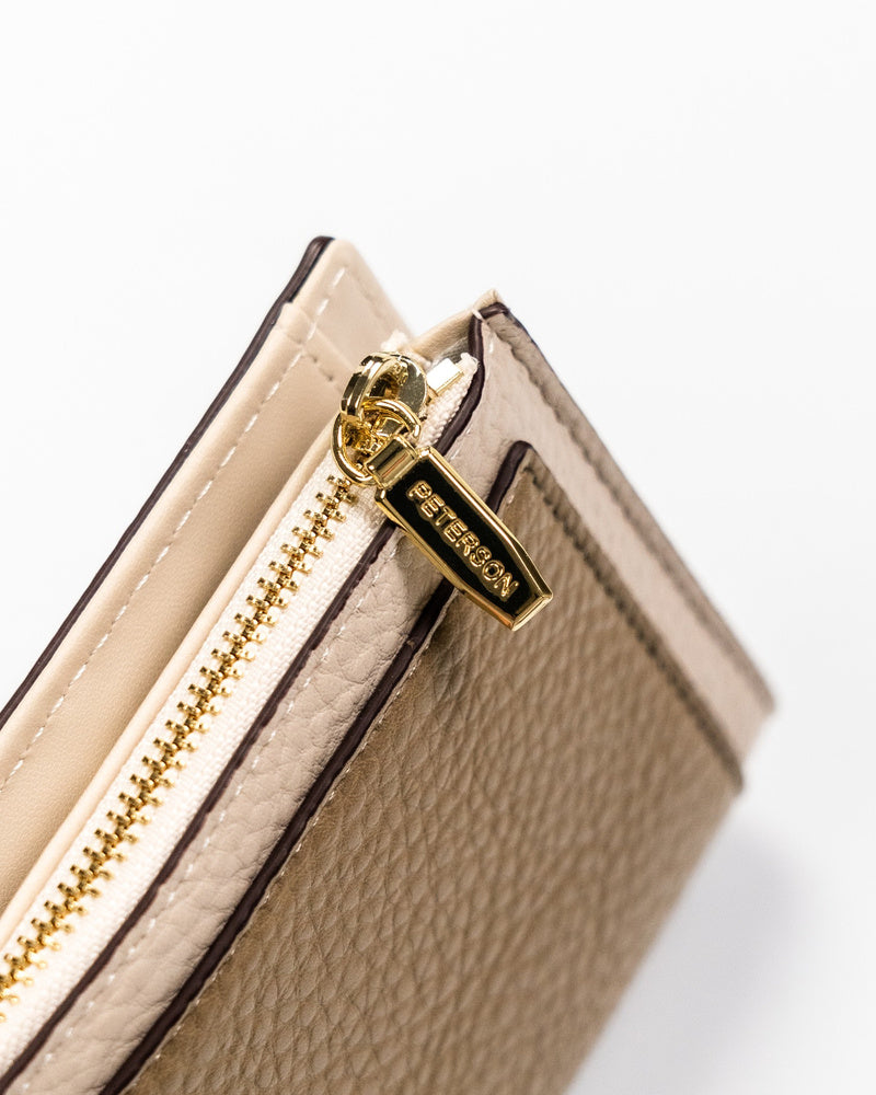 Ši elegantiška ir kompaktiška moteriška piniginė iš Peterson yra puikus pasirinkimas tiems, kurie vertina stilių ir funkcionalumą. Pagaminta iš ekologiškos odos, ji ne tik atrodo puikiai, bet ir yra draugiška aplinkai. Smėlio spalva suteikia universalumo, todėl piniginė puikiai derės prie įvairių aprangos stilių.