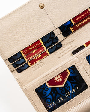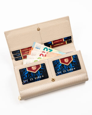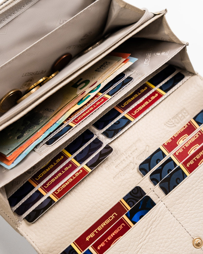Ši elegantiška moteriška piniginė iš natūralios odos yra puikus pasirinkimas tiems, kurie vertina kokybę ir funkcionalumą. Su daugiau nei 20 kortelių skyrių ir atskiru monetų skyriumi, ji užtikrina patogų ir organizuotą daiktų laikymą. Smėlio spalva suteikia subtilumo ir stiliaus, o didelis dydis leidžia patogiai sutalpinti visus būtiniausius daiktus.