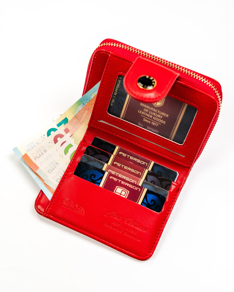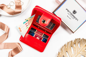 Ši moteriška piniginė yra puikus pasirinkimas tiems, kurie vertina stilių ir funkcionalumą. Jos kompaktiškas dydis leidžia patogiai laikyti visus būtiniausius daiktus, o elegantiška raudona spalva suteikia išskirtinumo.