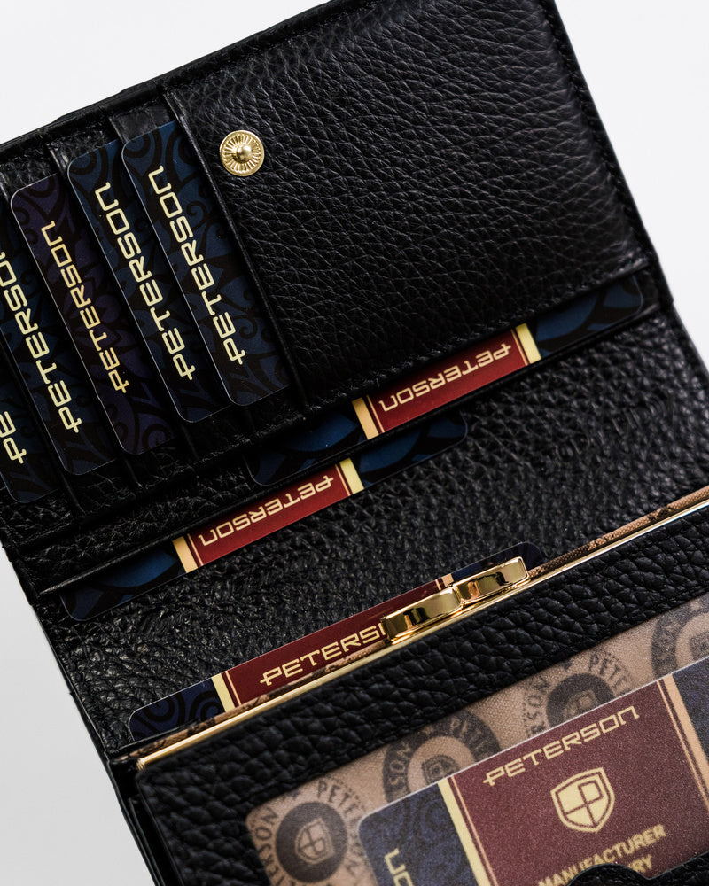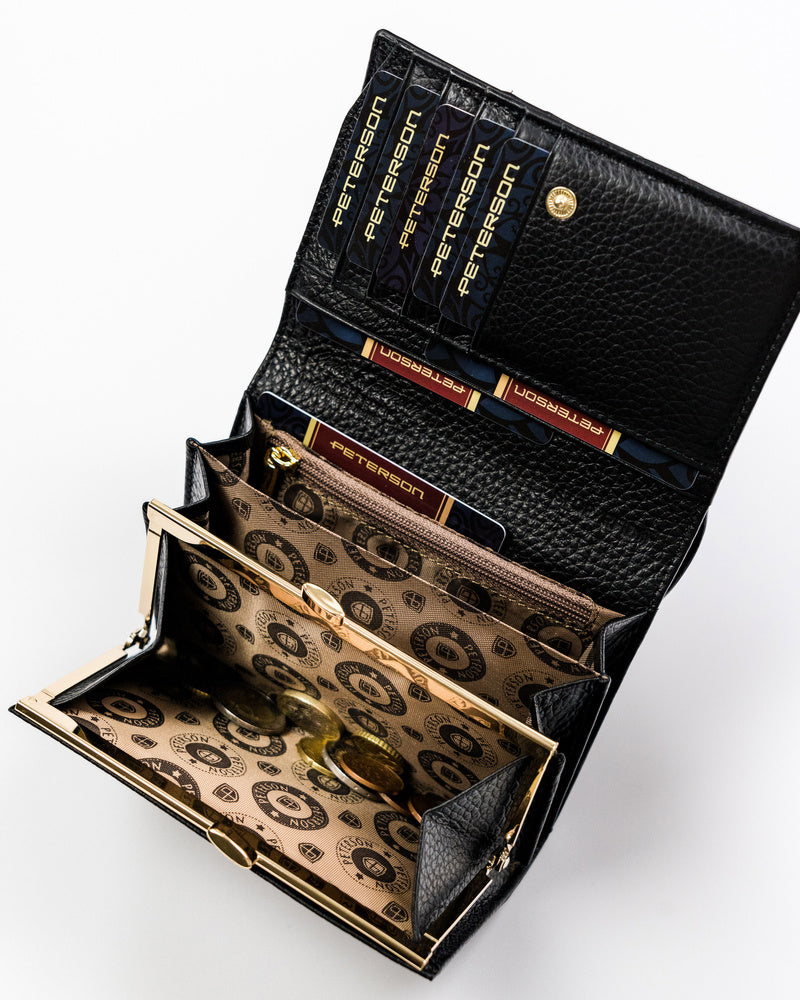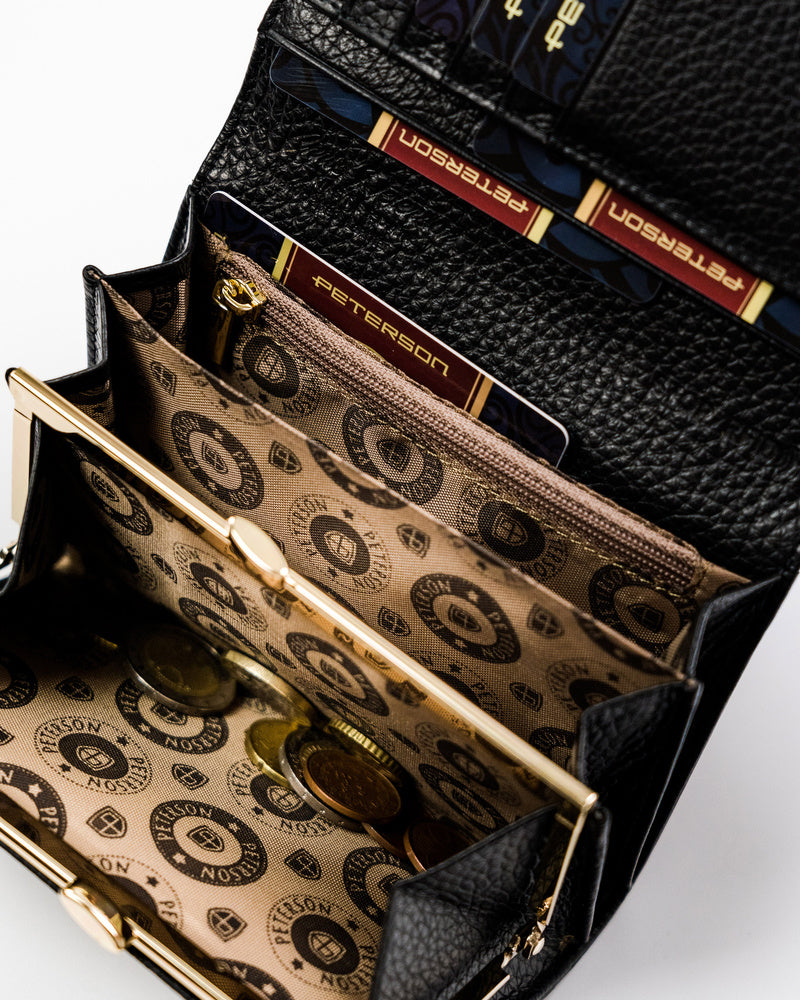 Ši elegantiška moteriška piniginė iš Peterson yra puikus pasirinkimas ieškantiems kokybės ir stiliaus. Pagaminta iš natūralios odos, ji užtikrina ilgaamžiškumą ir prabangų pojūtį.