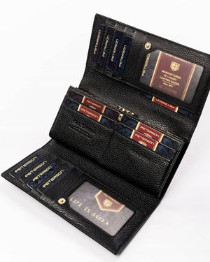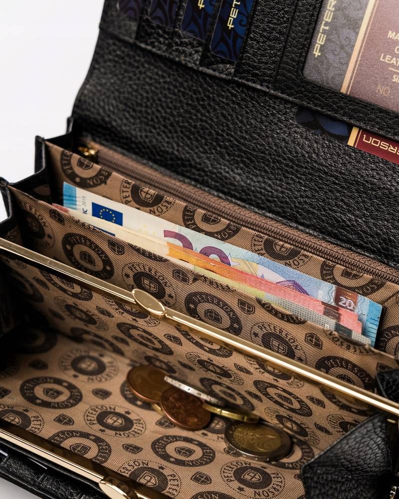 Ši elegantiška moteriška piniginė iš natūralios odos yra puikus pasirinkimas tiems, kurie vertina kokybę ir funkcionalumą. Juoda spalva suteikia klasikinį ir universalų stilių, o didelis dydis užtikrina, kad viskas, ko reikia, bus patogiai sutalpinta.