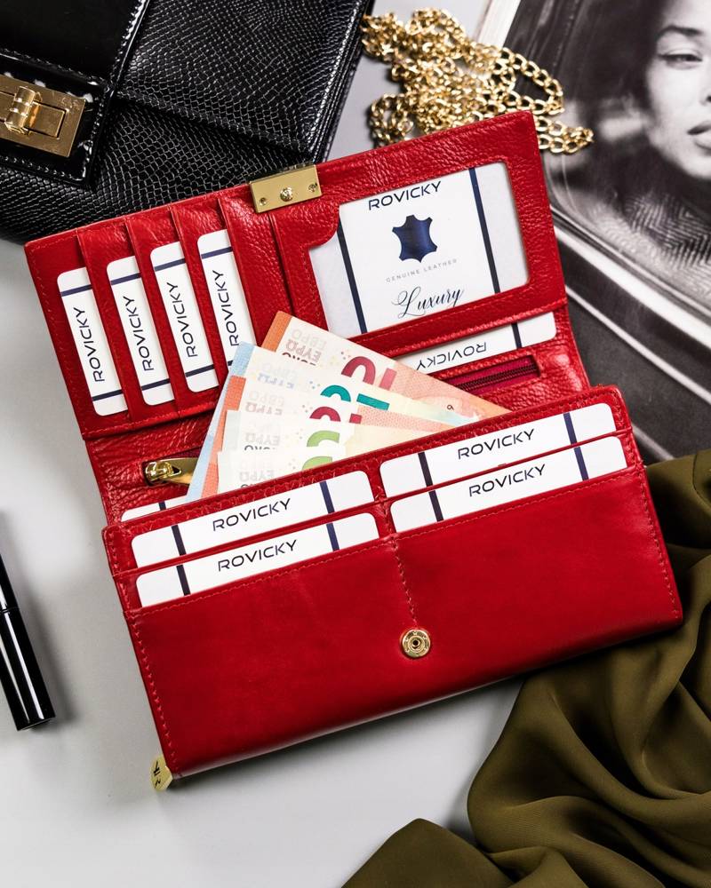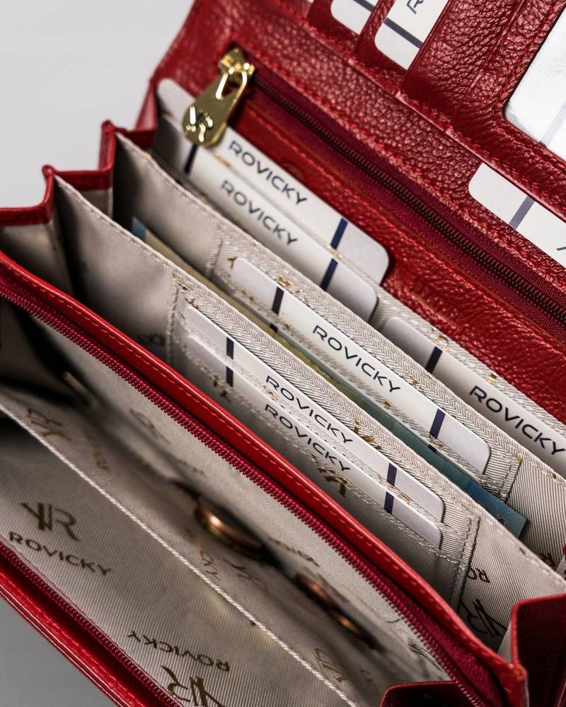 Ši elegantiška ir funkcionali piniginė moterims Rovicky L56 yra puikus pasirinkimas ieškantiems kokybės ir stiliaus. Pagaminta iš natūralios odos, ji ne tik atrodo prabangiai, bet ir yra ilgaamžė. Raudona spalva suteikia išskirtinumo, o didelis dydis užtikrina, kad turėsite pakankamai vietos visiems savo daiktams. Su 15+ kortelių skyrių ir RFID apsauga, jūsų asmeniniai duomenys bus saugūs. Išmatavimai 10 cm x 19 cm x 3,5 cm leidžia patogiai laikyti piniginę rankinėje ar kišenėje.