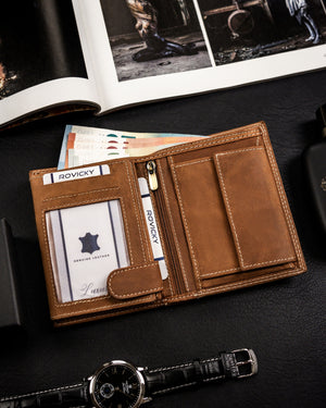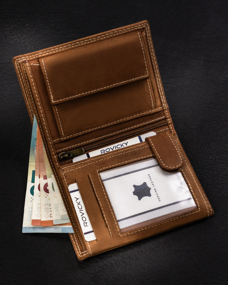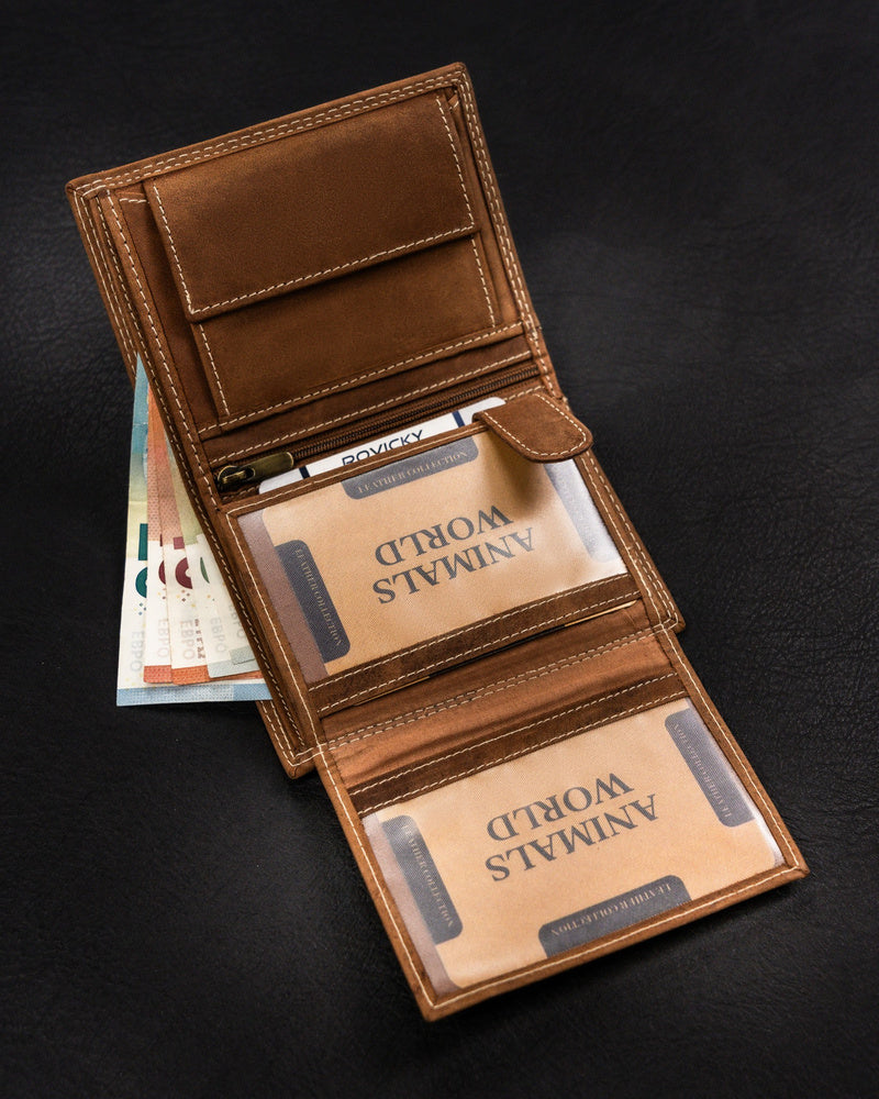 Ši vyriška piniginė iš Always Wild kolekcijos yra pagaminta iš aukštos kokybės natūralios zomšos ir nubuko odos, suteikiančios elegantišką ir patvarų dizainą. Šviesiai ruda spalva puikiai dera prie įvairių stilių, o didelis dydis užtikrina, kad turėsite pakankamai vietos visiems savo reikmenims. Piniginė taip pat turi RFID apsaugą, kuri padeda apsaugoti jūsų korteles nuo nepageidaujamo nuskaitymo. Su 6-10 kortelių skyriais, ši piniginė yra praktiškas ir stilingas pasirinkimas kiekvienam vyrui.