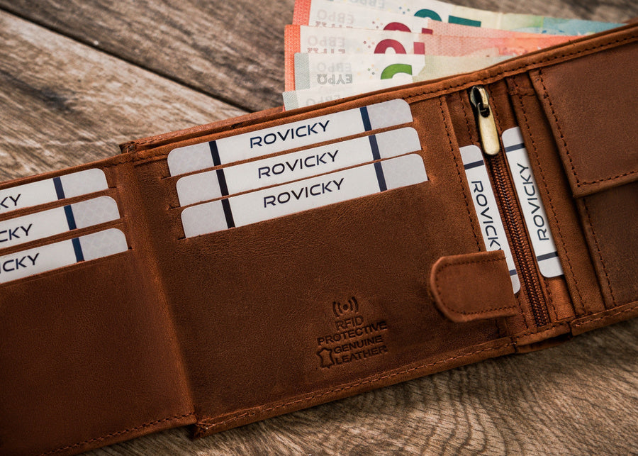 Ši elegantiška ir funkcionali piniginė yra puikus pasirinkimas vyrams, vertinantiems kokybę ir stilių. Pagaminta iš natūralios zomšos ir nubuko odos, ji užtikrina ilgaamžiškumą ir patogumą. Šviesiai ruda spalva suteikia klasikinį ir universalų įvaizdį, tinkantį įvairioms progoms. Piniginė turi RFID apsaugą, kuri padeda apsaugoti jūsų korteles nuo nepageidaujamo nuskaitymo. Su 6-10 kortelių skyriais, ji suteikia pakankamai vietos visiems jūsų svarbiausiems dokumentams. Dėl savo didelio dydžio ir patogių išmatavimų, ši piniginė yra praktiškas ir stilingas pasirinkimas kasdieniam naudojimui.