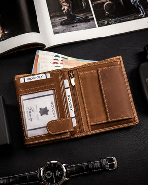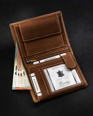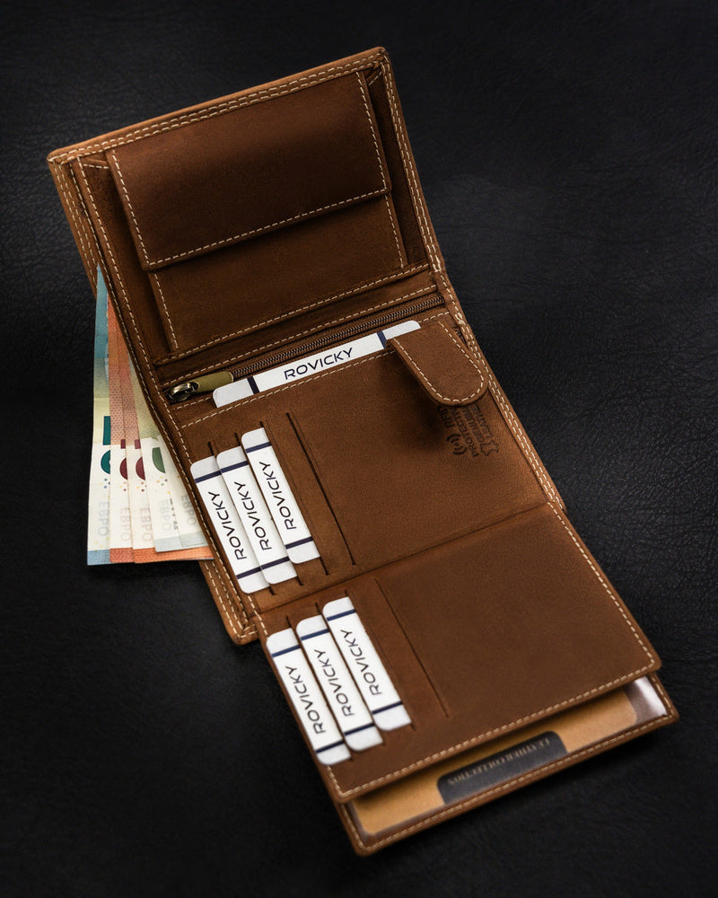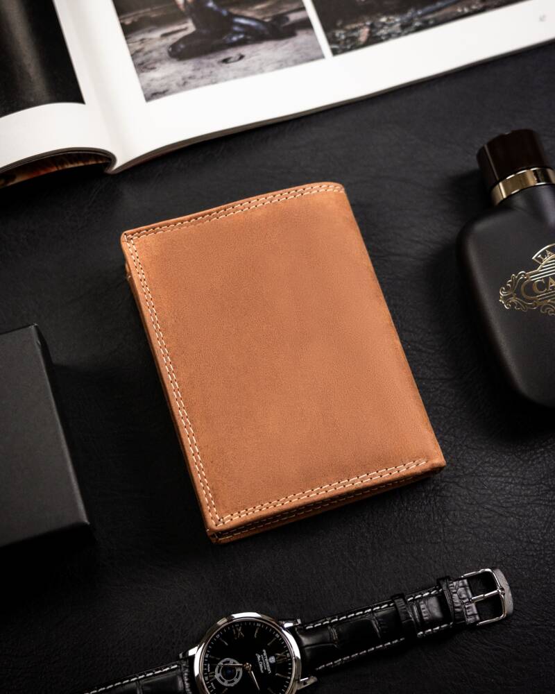 Ši elegantiška ir funkcionali piniginė yra puikus pasirinkimas vyrams, vertinantiems kokybę ir stilių. Pagaminta iš natūralios zomšos ir nubuko odos, ji užtikrina ilgaamžiškumą ir patogumą. Šviesiai ruda spalva suteikia klasikinį ir universalų įvaizdį, tinkantį įvairioms progoms. Didelis dydis leidžia patogiai laikyti visus reikalingus daiktus, o RFID apsauga užtikrina jūsų kortelių saugumą. Su 6-10 kortelių skyriais, ši piniginė yra praktiškas ir stilingas pasirinkimas kasdieniam naudojimui.