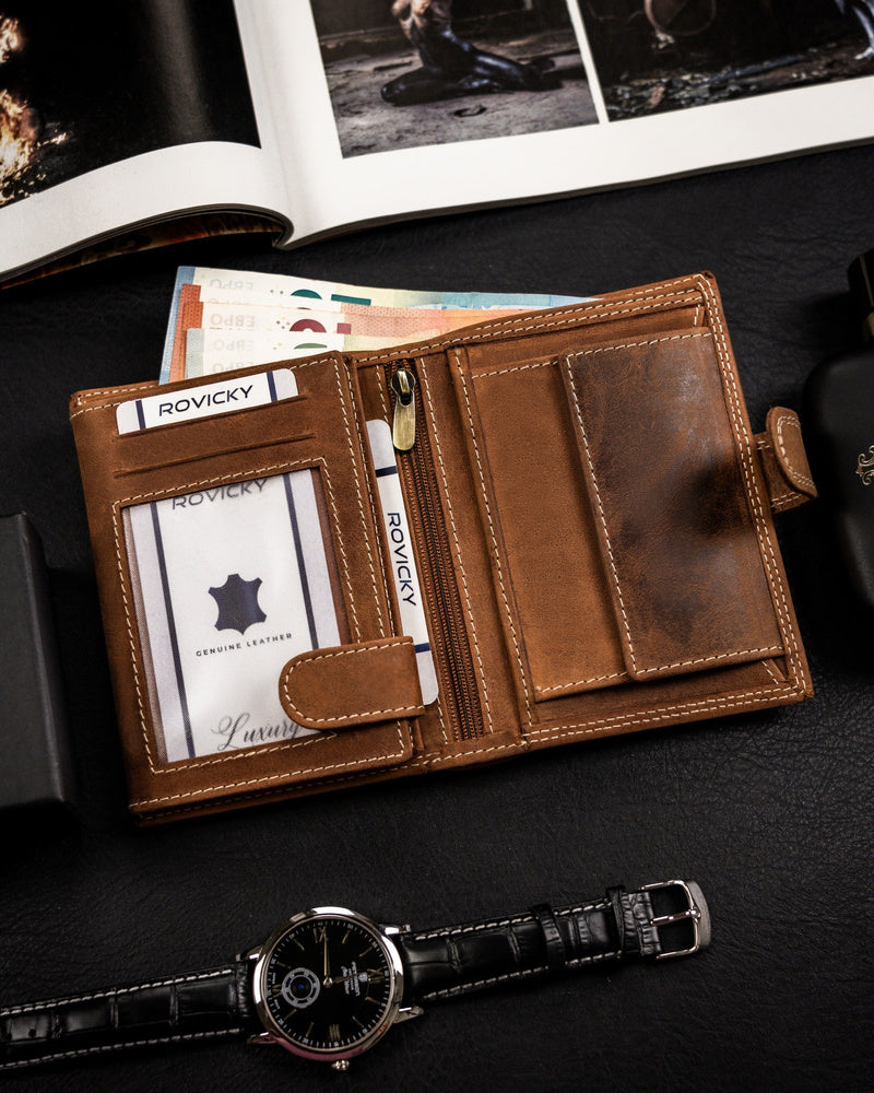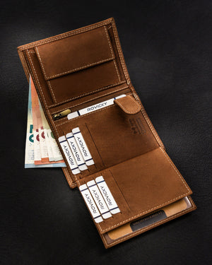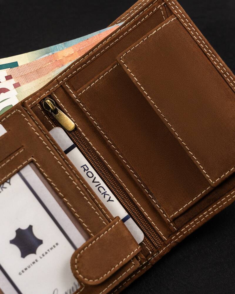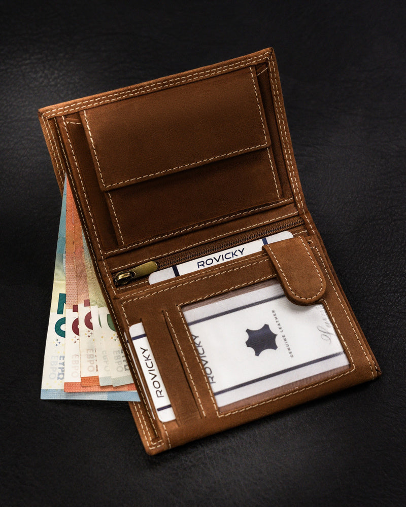 Ši elegantiška ir funkcionali piniginė yra puikus pasirinkimas vyrams, vertinantiems kokybę ir stilių. Pagaminta iš natūralios zomšos ir nubuko odos, ji užtikrina ilgaamžiškumą ir patogumą. Šviesiai ruda spalva suteikia klasikinį ir universalų įvaizdį, tinkantį įvairioms progoms. Didelis dydis leidžia patogiai laikyti visus būtiniausius daiktus, o RFID apsauga užtikrina jūsų kortelių saugumą. Su 6-10 kortelių skyriais, ši piniginė yra praktiška ir talpi, puikiai atitinkanti šiuolaikinio vyro poreikius.