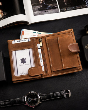 Ši elegantiška vyriška piniginė iš Always Wild kolekcijos yra pagaminta iš natūralios zomšos ir nubuko odos, suteikiančios jai prabangų ir patvarų pojūtį. Šviesiai ruda spalva puikiai dera prie įvairių stilių, o didelis dydis užtikrina, kad turėsite pakankamai vietos visiems savo svarbiausiems daiktams. Piniginė taip pat turi RFID apsaugą, kuri padeda apsaugoti jūsų korteles nuo nepageidaujamo nuskaitymo. Su 6-10 kortelių skyriais, ši piniginė yra praktiškas ir stilingas pasirinkimas kiekvienam vyrui.