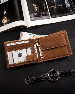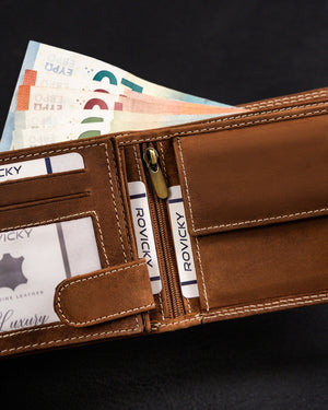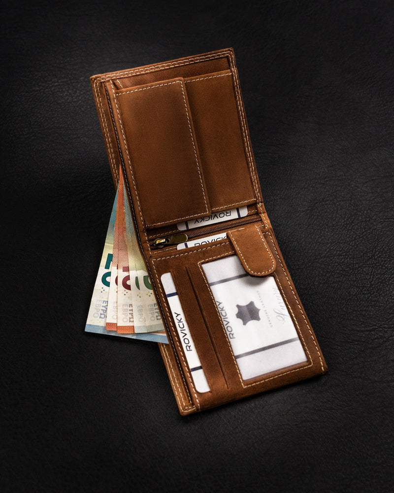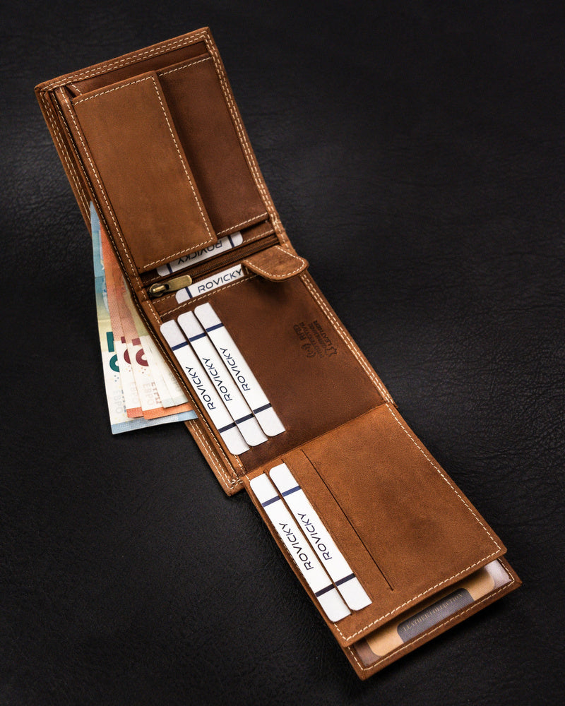 Ši elegantiška ir funkcionali piniginė yra puikus pasirinkimas vyrams, vertinantiems kokybę ir stilių. Pagaminta iš natūralios zomšos ir nubuko odos, ji užtikrina ilgaamžiškumą ir patogumą. Šviesiai ruda spalva suteikia klasikinį ir universalų įvaizdį, tinkantį įvairioms progoms. Didelis dydis leidžia patogiai laikyti visus reikalingus daiktus, o RFID apsauga užtikrina jūsų kortelių saugumą. Su 6-10 kortelių skyriais, ši piniginė yra praktiška ir talpi.