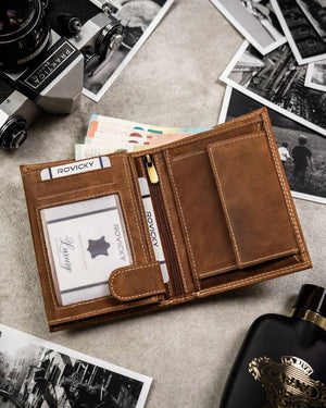 Ši elegantiška ir funkcionali piniginė yra puikus pasirinkimas vyrams, vertinantiems kokybę ir saugumą. Pagaminta iš natūralios zomšos ir nubuko odos, ji ne tik atrodo stilingai, bet ir užtikrina ilgaamžiškumą. Šviesiai ruda spalva suteikia klasikinį ir universalų įvaizdį, tinkantį įvairioms progoms. Didelis dydis leidžia patogiai laikyti visus būtiniausius daiktus, o RFID apsauga saugo jūsų korteles nuo nepageidaujamo nuskaitymo. Su 6-10 kortelių skyriais, ši piniginė atitiks visus jūsų poreikius.