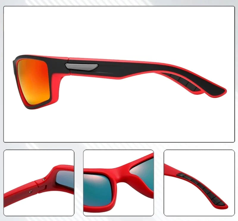 Modernūs ir funkcionalūs sportiniai poliarizuoti akiniai nuo saulės su aptakaus dizaino rėmeliu ir raudonais veidrodiniais lęšiais. Puikiai tinka tiek vyrams, tiek moterims, ieškantiems stilingo, patogaus ir patikimą apsaugą suteikiančio aksesuaro aktyviam laisvalaikiui lauke.
