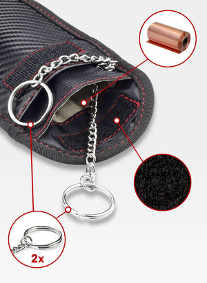 Jei turite automobilį su berakte sistema, šis dėklas yra puikus pasirinkimas. Jis apsunkina vagims galimybę nuskaityti ir perimti signalą iš jūsų rakto. Dėklo korpusas pagamintas iš specialios medžiagos, kuri blokuoja signalus. Įdėjus raktą į auksinį skyrelį, signalai nebus skleidžiami į aplinką. Viduje esanti mikropluošto medžiaga atspindi radijo bangas, neleisdama joms prasiskverbti pro korpusą.