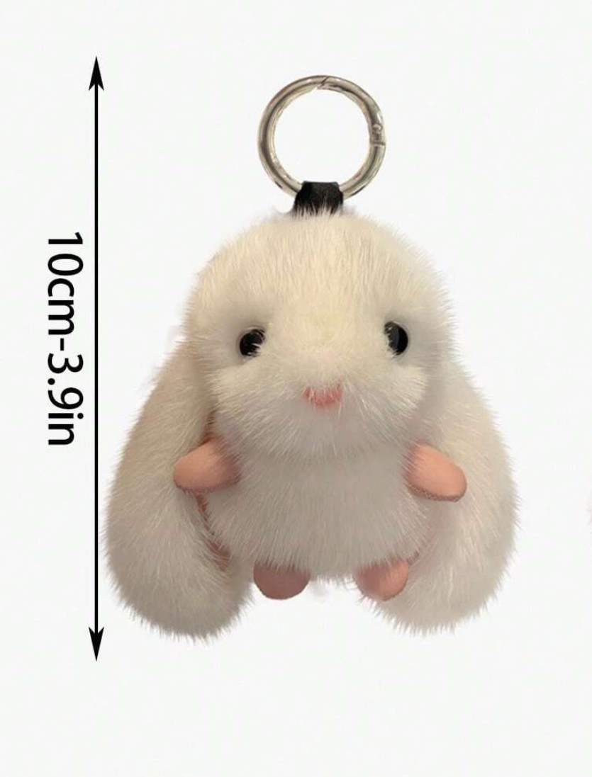 Šis pūkuotas kiškio formos pakabukas yra puikus aksesuaras, tinkantis raktams, rankinėms ar kuprinėms. Jo elegantiškas dizainas ir švelni balta spalva suteikia žavesio bet kokiam stiliui.