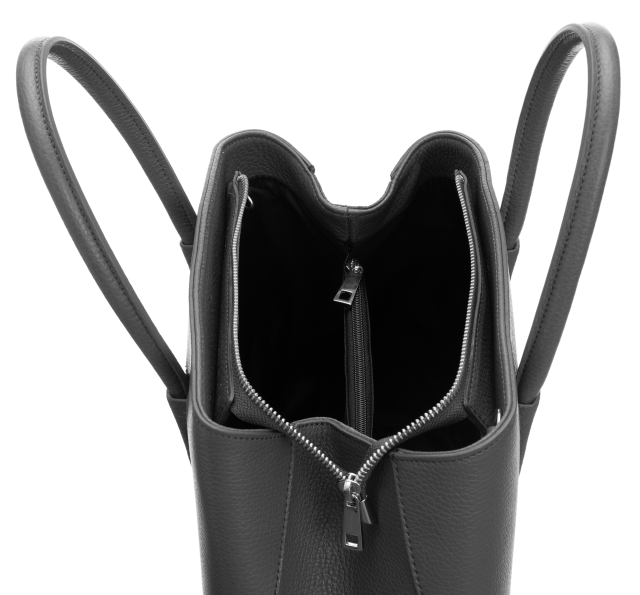Ši elegantiška moteriška rankinė yra pagaminta iš aukštos kokybės natūralios odos, kuri užtikrina ilgaamžiškumą ir stilingą išvaizdą. Pagrindinė rankinės spalva yra subtili pilka, puikiai tinkanti kasdieniam miesto stiliui.
