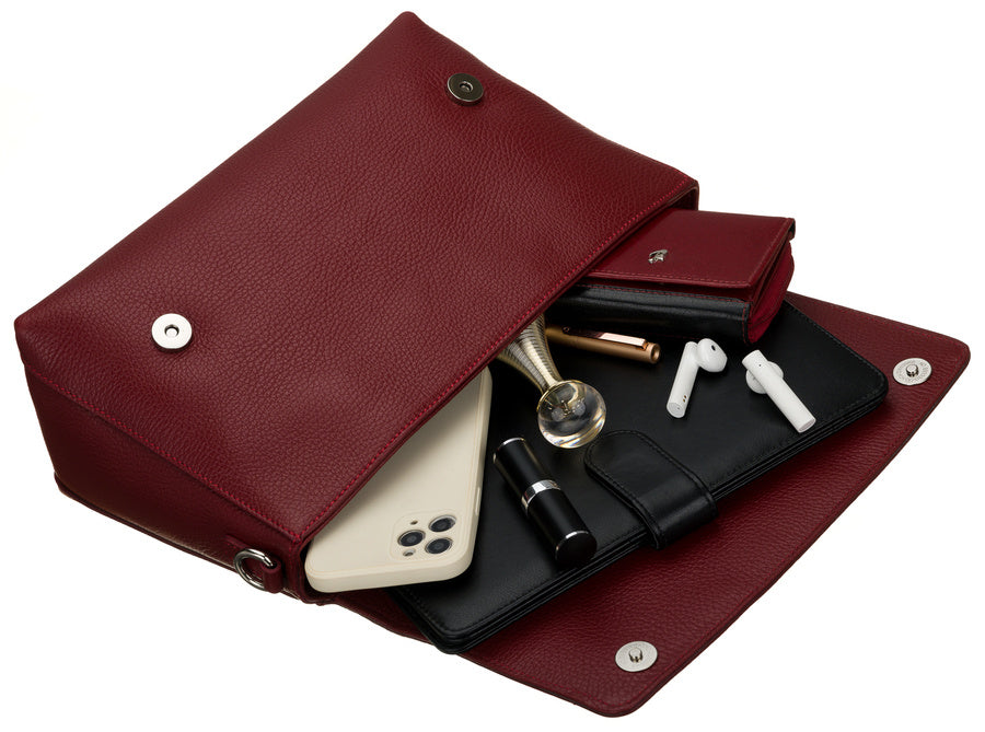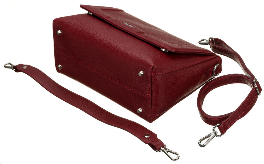Ši elegantiška rankinė pagaminta iš aukštos kokybės natūralios odos, kuri užtikrina ilgaamžiškumą ir stilingą išvaizdą. Pagrindinė rankinės spalva yra ryški raudona, kuri suteikia išskirtinumo ir pritraukia dėmesį.