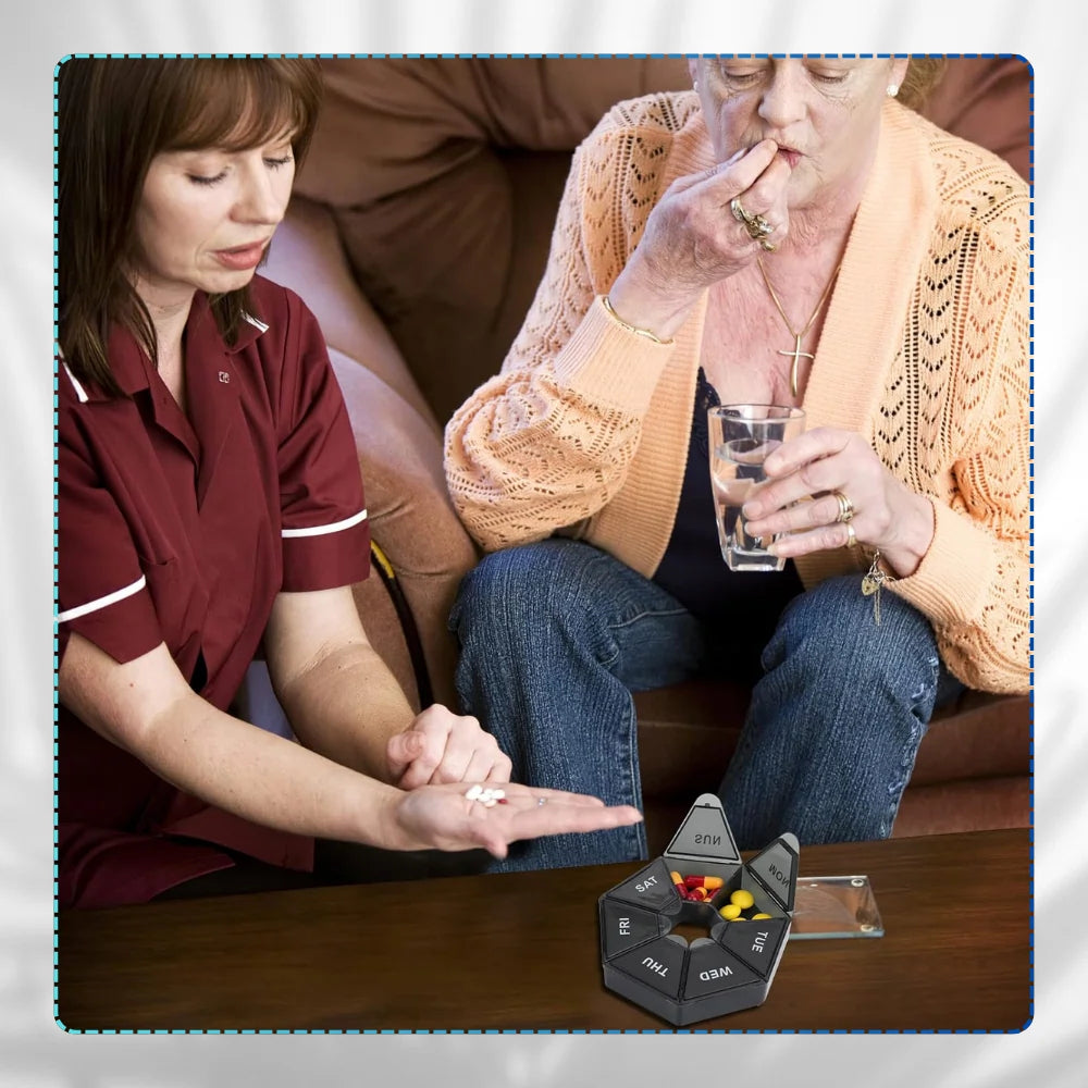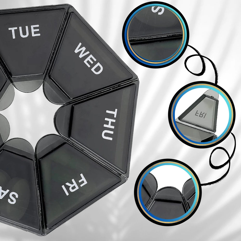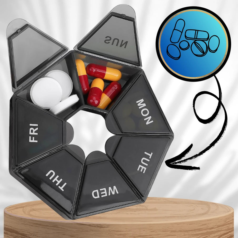 Šis savaitinis vaistų organizatorius yra puikus sprendimas, padedantis tvarkingai laikyti vaistus visai savaitei. Jis susideda iš septynių atskirų skyrelių, kiekvienas skirtas vienai savaitės dienai.