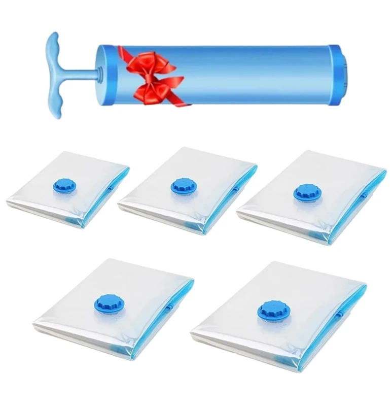 Šis rinkinys, sudarytas iš 5 vakuuminių maišų ir pompos, yra puikus sprendimas jūsų drabužių apsaugai ir vietos taupymui.