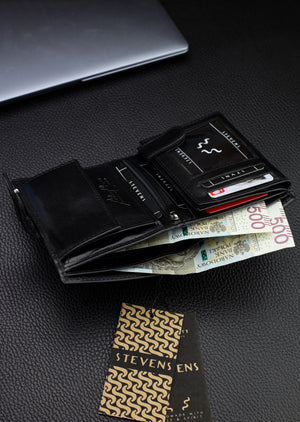 Vyriška natūralios odos piniginė Stevens Z05, juoda