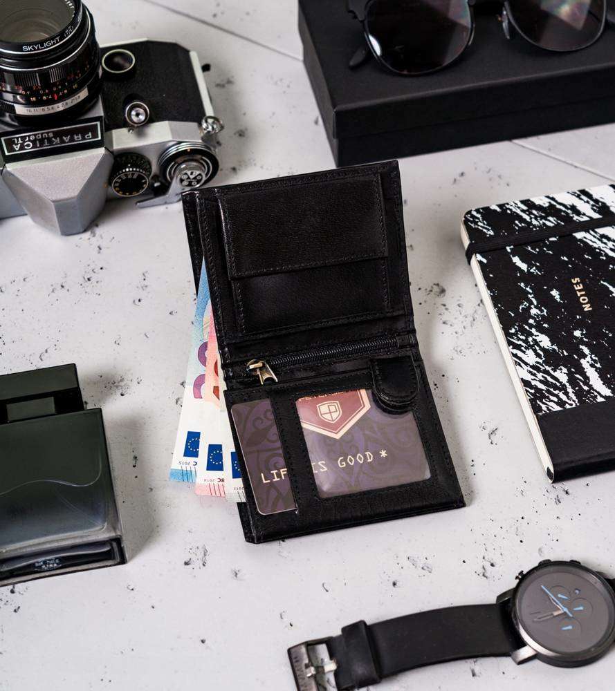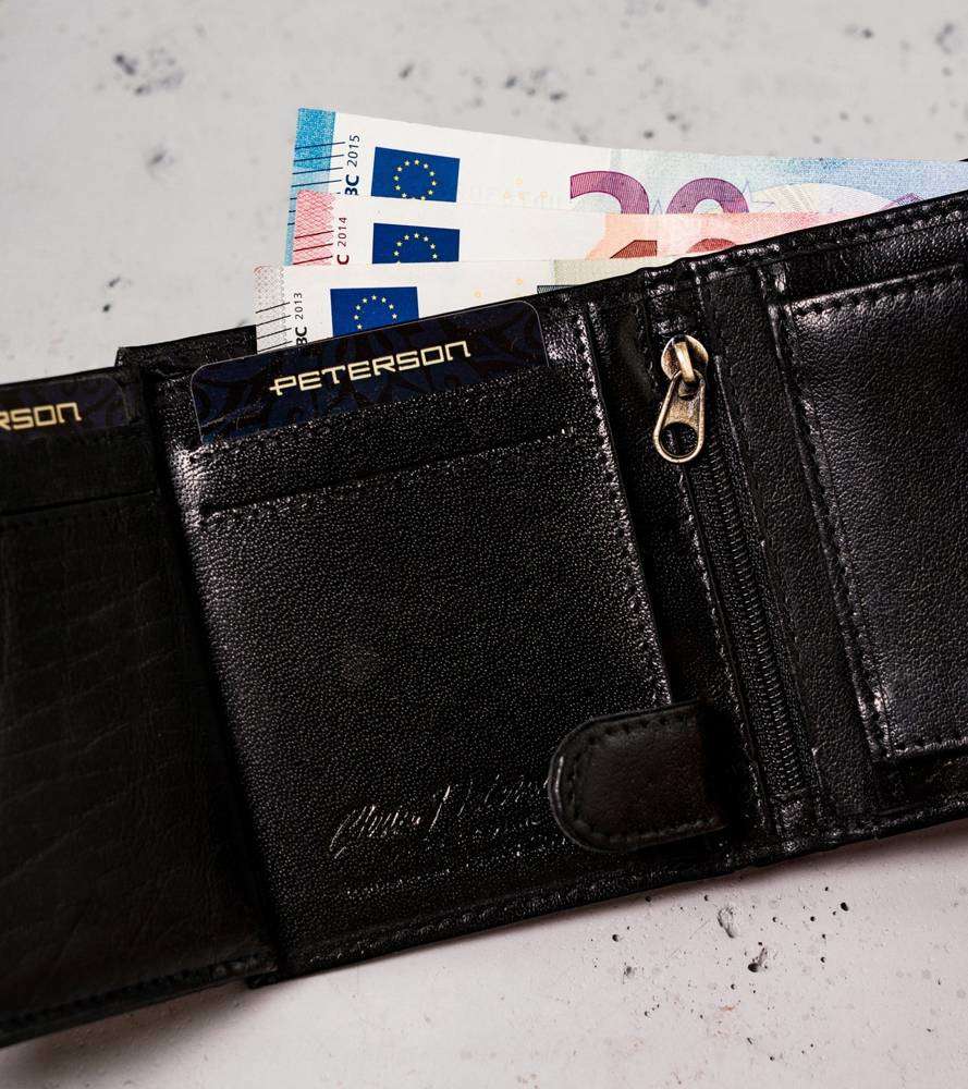Vyriška odinė piniginė Peterson B3, juoda S488