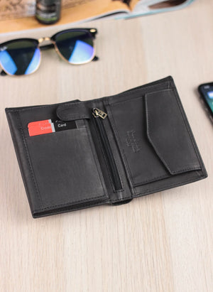 Ši elegantiška vyriška piniginė yra pagaminta iš aukštos kokybės natūralios odos, užtikrinančios ilgaamžiškumą ir stilių. Piniginė turi integruotą RFID apsaugą, kuri padeda apsaugoti jūsų bekontaktes korteles nuo skaitmeninių duomenų vagysčių.