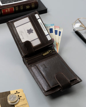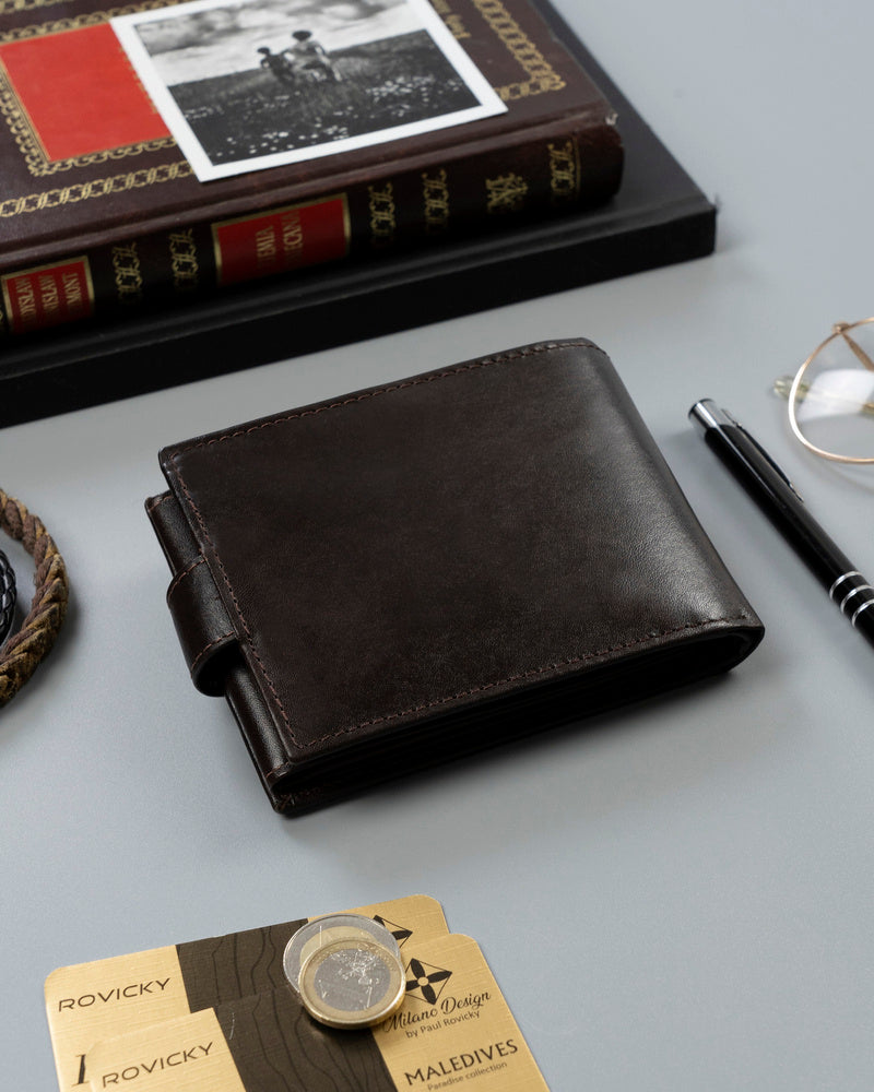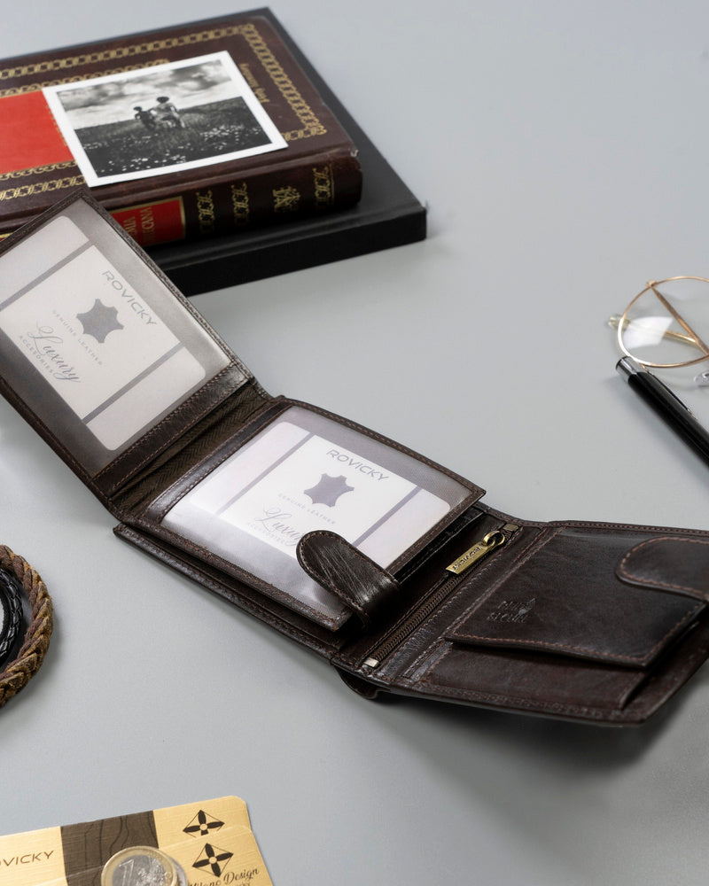 Ši vyriška piniginė iš Rovicky kolekcijos yra pagaminta iš aukštos kokybės natūralios odos, kuri užtikrina ilgaamžiškumą ir eleganciją. Tamsiai raudona spalva suteikia išskirtinumo ir stiliaus.