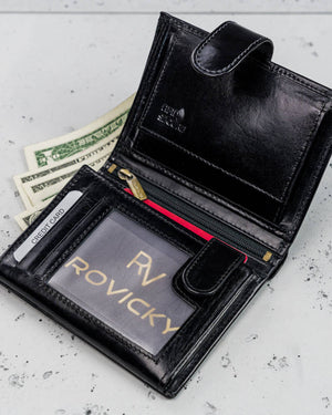 Ši elegantiška vyriška piniginė iš Rovicky yra pagaminta iš aukštos kokybės natūralios odos, kuri užtikrina ilgaamžiškumą ir stilingą išvaizdą.
